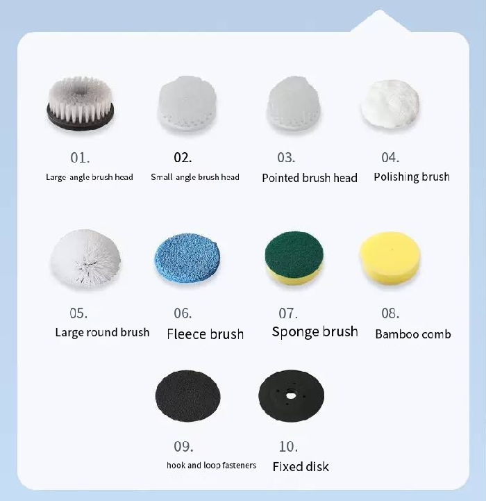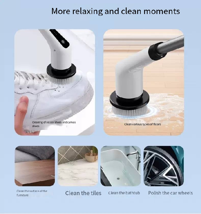 Do you want to save time and effort? Choose this 9-in-1 wireless electric cleaning brush! It can handle oil stains, scale, and dust. With a wireless design, it doesn't get tangled by wires, and it's lightweight to hold, remaining non-corrosive even after long use. One set covers nine sets, doubling your cleaning efficiency. You no longer need to stockpile a bunch of cleaning tools!