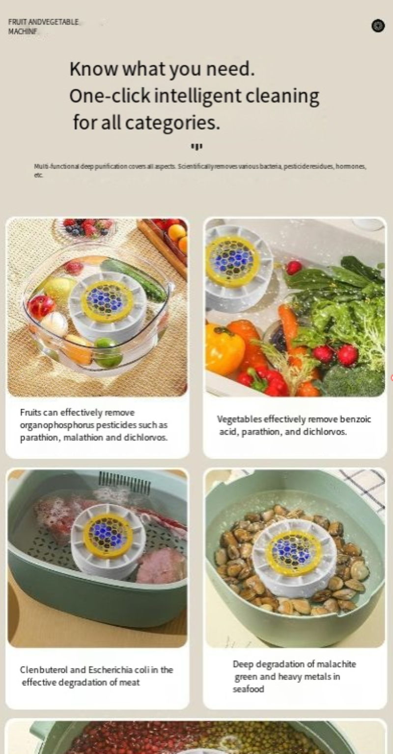 It's highly effective in killing bacteria and removing pesticide residues, and it's safe for pregnant and breastfeeding women to use. For expectant mothers and those nursing, ensuring the safety of food is of utmost importance. This purifier provides that peace of mind, allowing them to enjoy a variety of foods without the fear of ingesting harmful substances. With this purifier, you can truly become a guardian of your family's health by using the right cleaning methods.