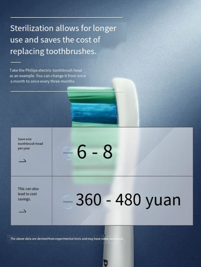Equipped with 253.7nm UV light, it achieves a 99.99% sterilization rate. Effectively eliminates bacteria and germs, reducing the risk of tooth decay, gingivitis, bad breath, and other oral problems.