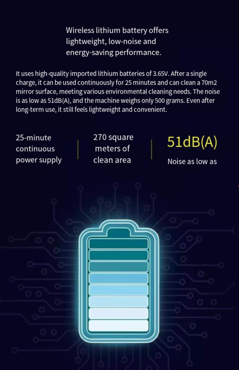 Say goodbye to tedious window cleaning steps. Just press the switch and let it lead you into a new era of “clean with one wipe”. From now on, every window in your home is a scenery, and every cleaning is a pleasure~