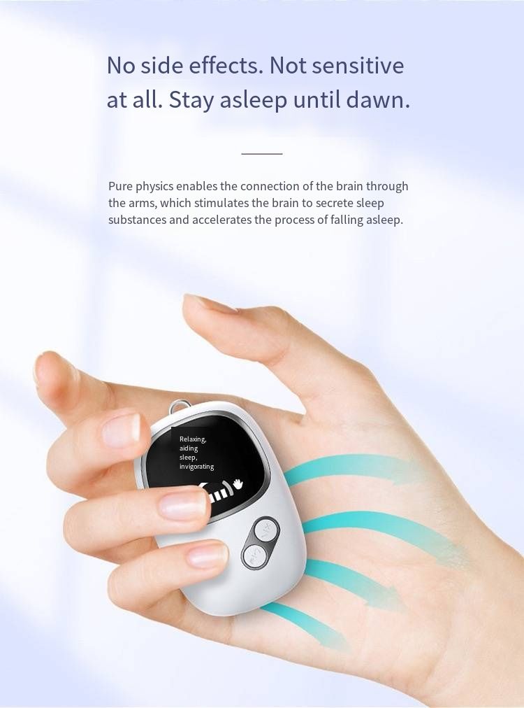 Waking up at night and unable to sleep? Try this handheld sleep device! It's the size of your palm, easy to hold. Just press it open and you can use it. No need to wear it on your head or press on your ears. It can relax you in just 10 minutes, stopping your mind from wandering. It can be charged once and used for 7 days. You can carry it in your pocket when on a business trip, working overtime, or staying up late. It's a sleep aid with no side effects. Insomniacs, close your eyes and fall asleep!