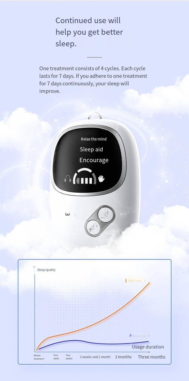 When you use it, it feels like you are in the peaceful moonlight. The brainwave sleep aid device simulates natural brain waves and gently guides your brain into a sleep state. Good sleep allows your body to get sufficient rest, and you will wake up energetic the next day, with your work efficiency soaring. It can also keep your skin in good condition, giving you a rosy complexion and making you look full of energy. Even your mood will become more stable, your memory will improve, and life will be full of surprises. Don't let insomnia trouble you anymore. Try this brainwave sleep aid device right away and embrace a night of good sleep every night!