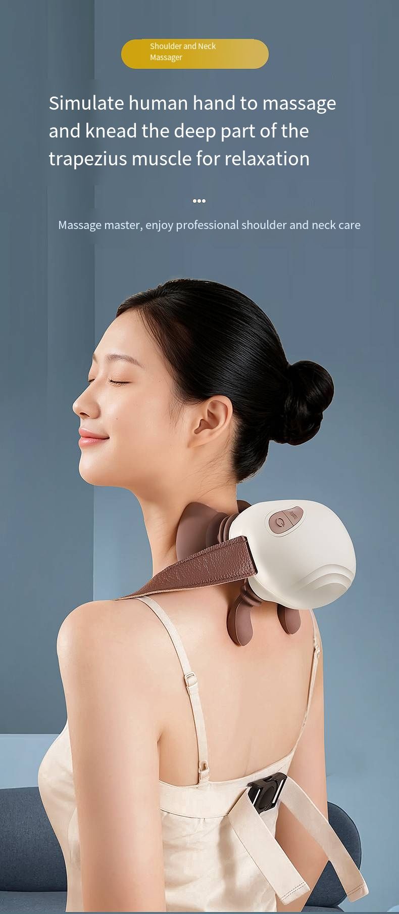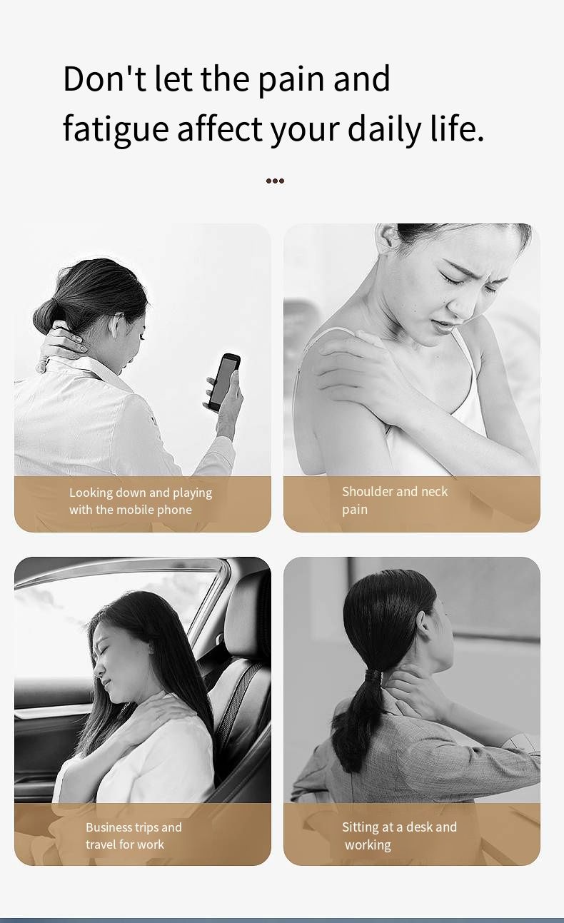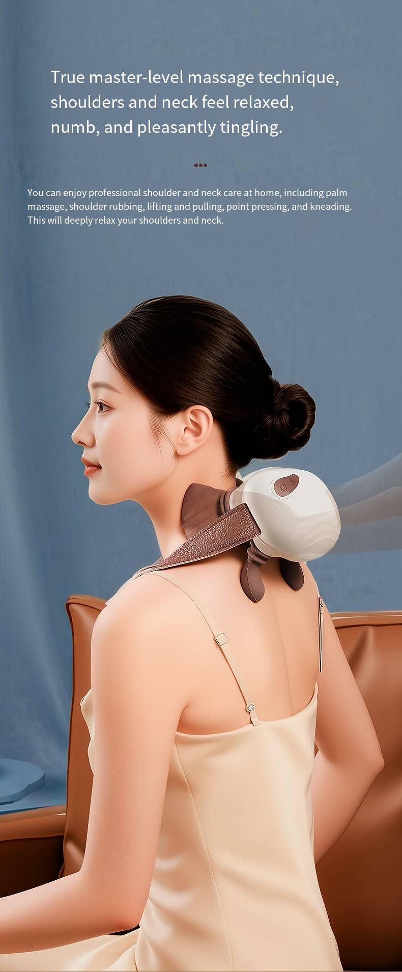 "Every day, you're typing on the computer, and your shoulders and neck feel as if they're weighed down by lead? When you lean forward to use your phone or hold your baby while doing housework, your neck becomes so sore that you can't even turn it? Queuing up at a massage parlor is expensive, and rubbing your own neck at home doesn't have an effective point of application? Don't let stiff shoulders and necks ruin your state! This shoulder and neck massager combines human-like manual massage with constant temperature heat therapy. It can 'unbuckle' your shoulders and neck in just 10 minutes and can be used anytime at home or in the office!"