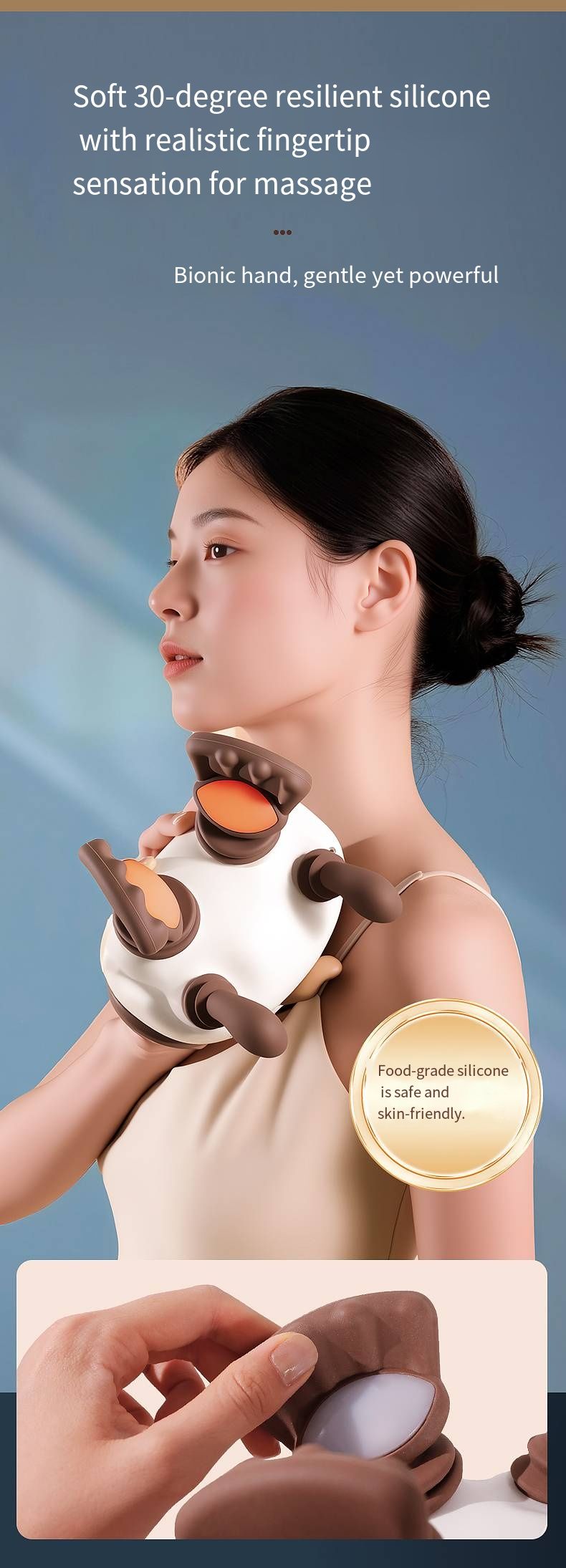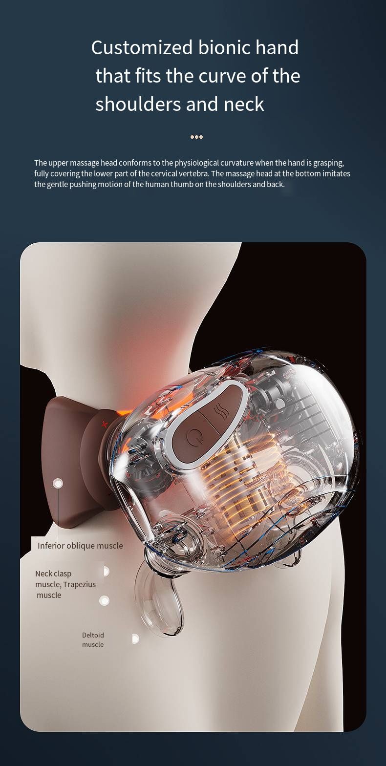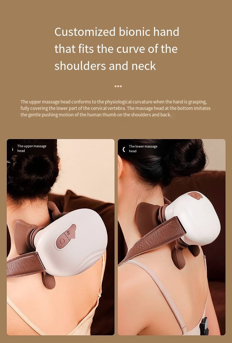 "Every day, you're typing on the computer, and your shoulders and neck feel as if they're weighed down by lead? When you lean forward to use your phone or hold your baby while doing housework, your neck becomes so sore that you can't even turn it? Queuing up at a massage parlor is expensive, and rubbing your own neck at home doesn't have an effective point of application? Don't let stiff shoulders and necks ruin your state! This shoulder and neck massager combines human-like manual massage with constant temperature heat therapy. It can 'unbuckle' your shoulders and neck in just 10 minutes and can be used anytime at home or in the office!"