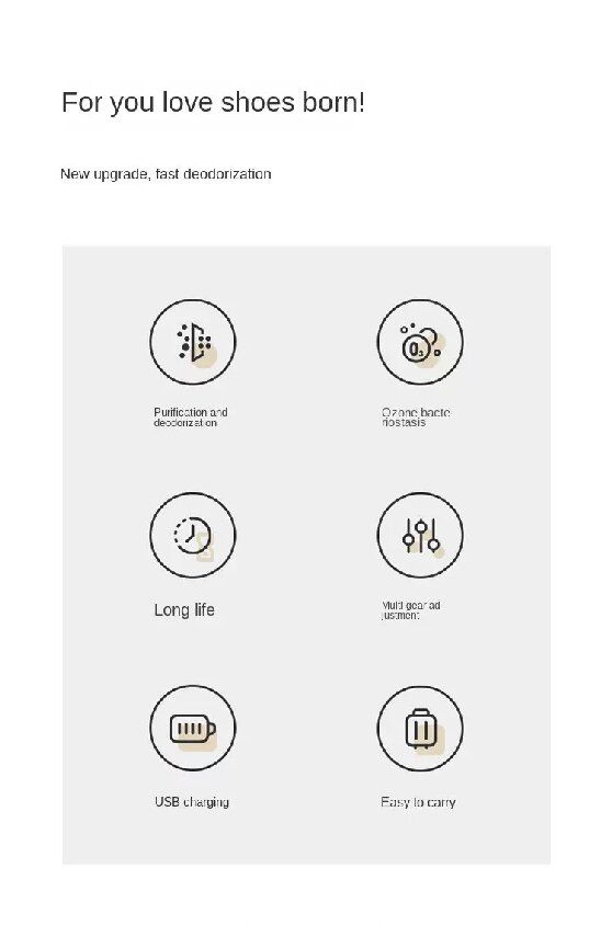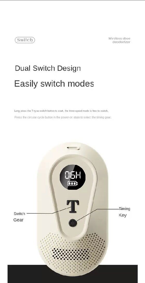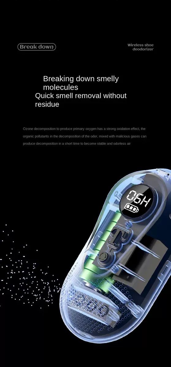 With its wireless design, it is compact, lightweight, and easy to carry. Just put it in your shoes, bag, or drawer, and turn on the deodorizing mode anytime, anywhere. Through efficient deodorization technology, it can quickly decompose odor molecules. Whether it's the sweat smell of sports shoes or the stuffy smell of the shoe cabinet, it can easily eliminate them, making every time you wear shoes or open the cabinet full of freshness.