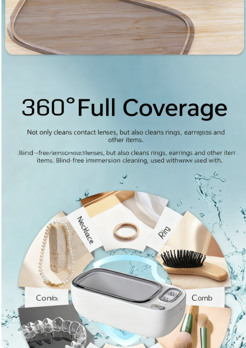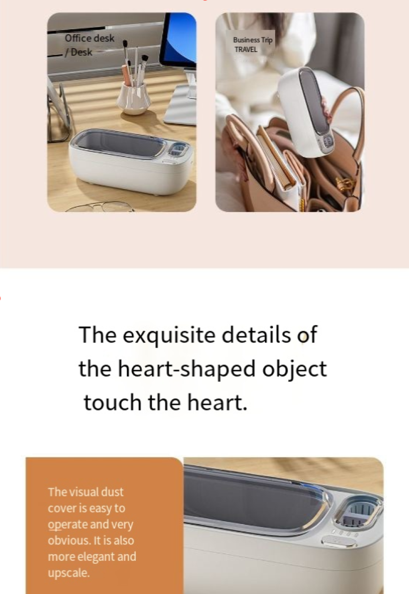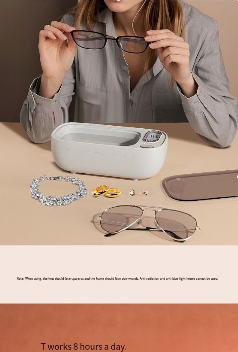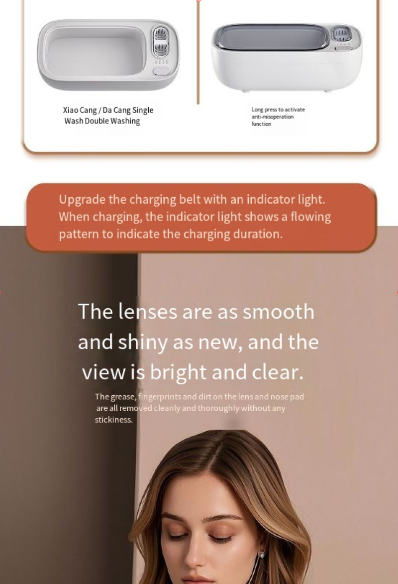 It adopts upgraded UV blue light care technology, penetrating into gaps to eliminate bacteria and easily remove dust and dirt. Whether it's stubborn fingerprints on eyeglass lenses, oxidation marks on jewelry, or residual powder in makeup brushes, just put them in the cleaner, and you'll get a clean and like-new using experience in a moment.