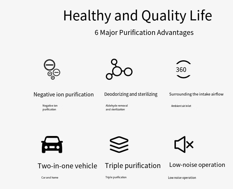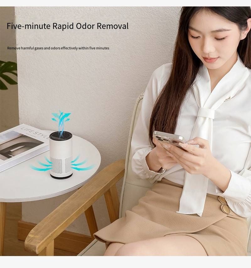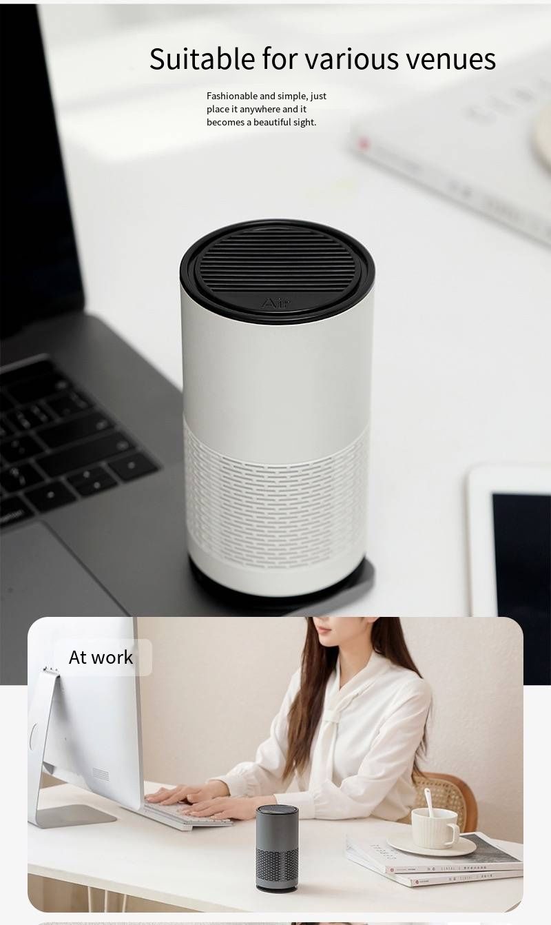 Are you still troubled by indoor formaldehyde, second-hand smoke, and odors? This Desktop Air Purifier creates an exclusive "breathing oasis" for you. It adopts circulating purification technology and is equipped with a HEPA activated carbon composite filter, which can efficiently adsorb pollutants such as formaldehyde, smoke, odors, and dust, with a purification rate of up to 99.97%. It also features blue light negative ion whole-house purification function, and the released negative ions can actively capture harmful particles in the air, making the air in the entire space as clean as new. In terms of design, it supports 360° circulating air intake to purify indoor air without dead angles; it is "quieter and safer" during operation and will not disturb your work or rest. The compact body can be easily placed in scenes such as desktops, bedrooms, and living rooms, and you can even add aromatherapy to enjoy a pleasant fragrance while breathing clean air. From materials to craftsmanship, from functions to experience, it safeguards your respiratory health with excellent quality, allowing you to enjoy air as fresh as that in a forest at all times.