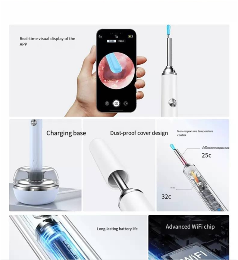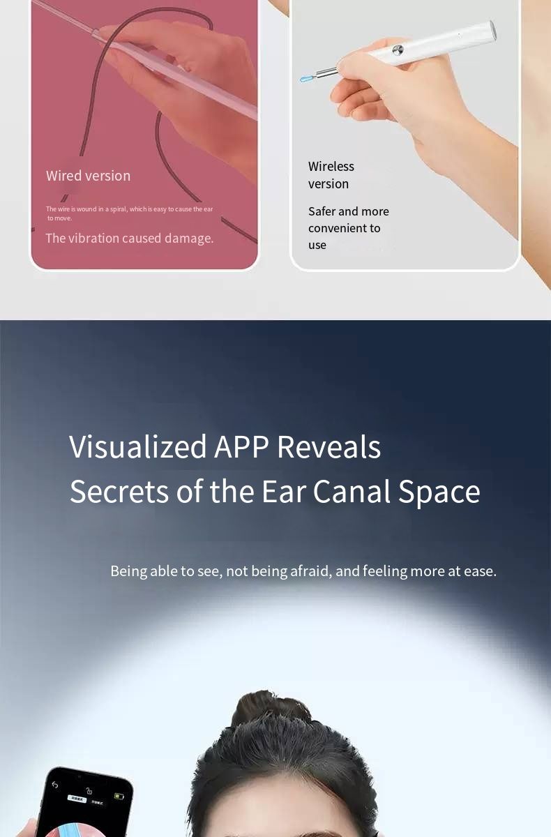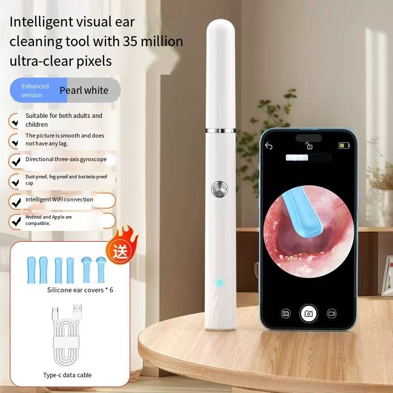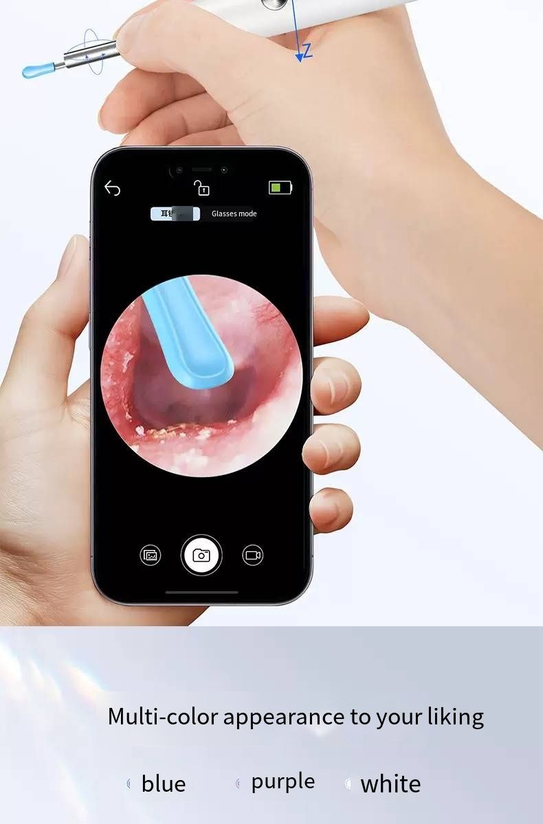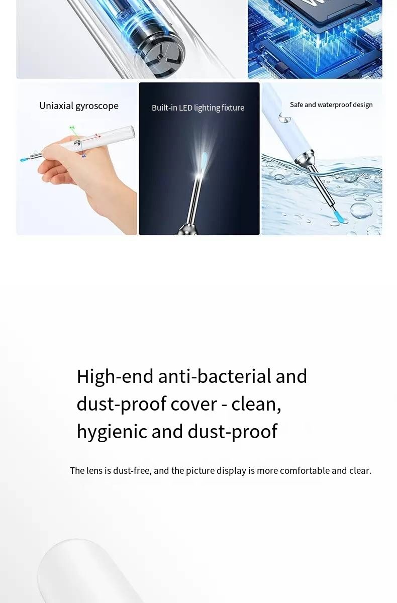 Still picking your ears blindly? This intelligent visual ear pick tool turns your hand into an "ear canal microscope"! With 35 million ultra-high-definition pixels and a 3.5mm ultra-fine lens, you can connect it to your phone to see the ear canal status in real time. IPX4 waterproof and 230mAh long battery life make ear picking like an "ear canal SPA", safe and clean. Say goodbye to ear canal troubles from now on.Afraid of hurting your child’s ears when picking? Can’t get your own ears clean enough? This visual ear pick solves all these problems! The high-definition lens makes earwax in the ear canal "nowhere to hide", and the soft tip design is gentle and non-irritating. Whether it’s for your child’s care or your own cleaning, you can see clearly and pick cleanly, achieving "professional ear picking freedom" at home.