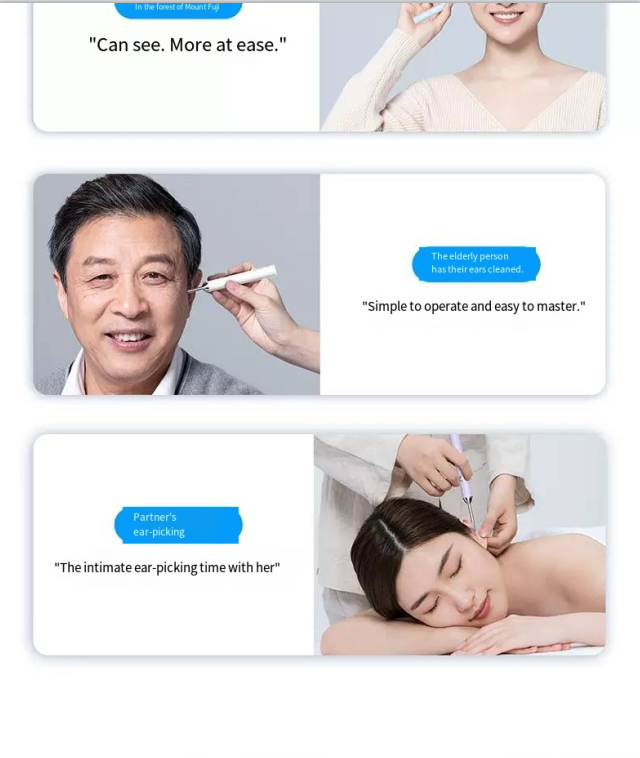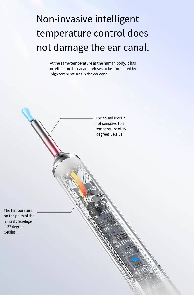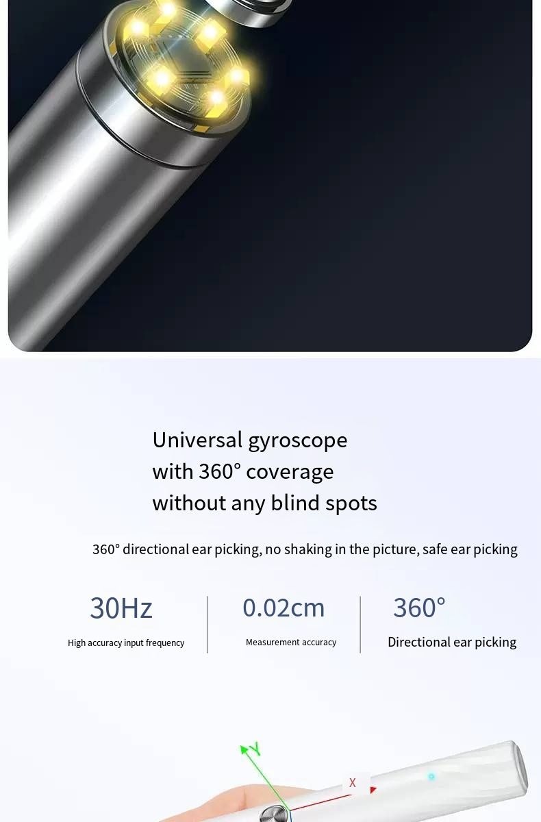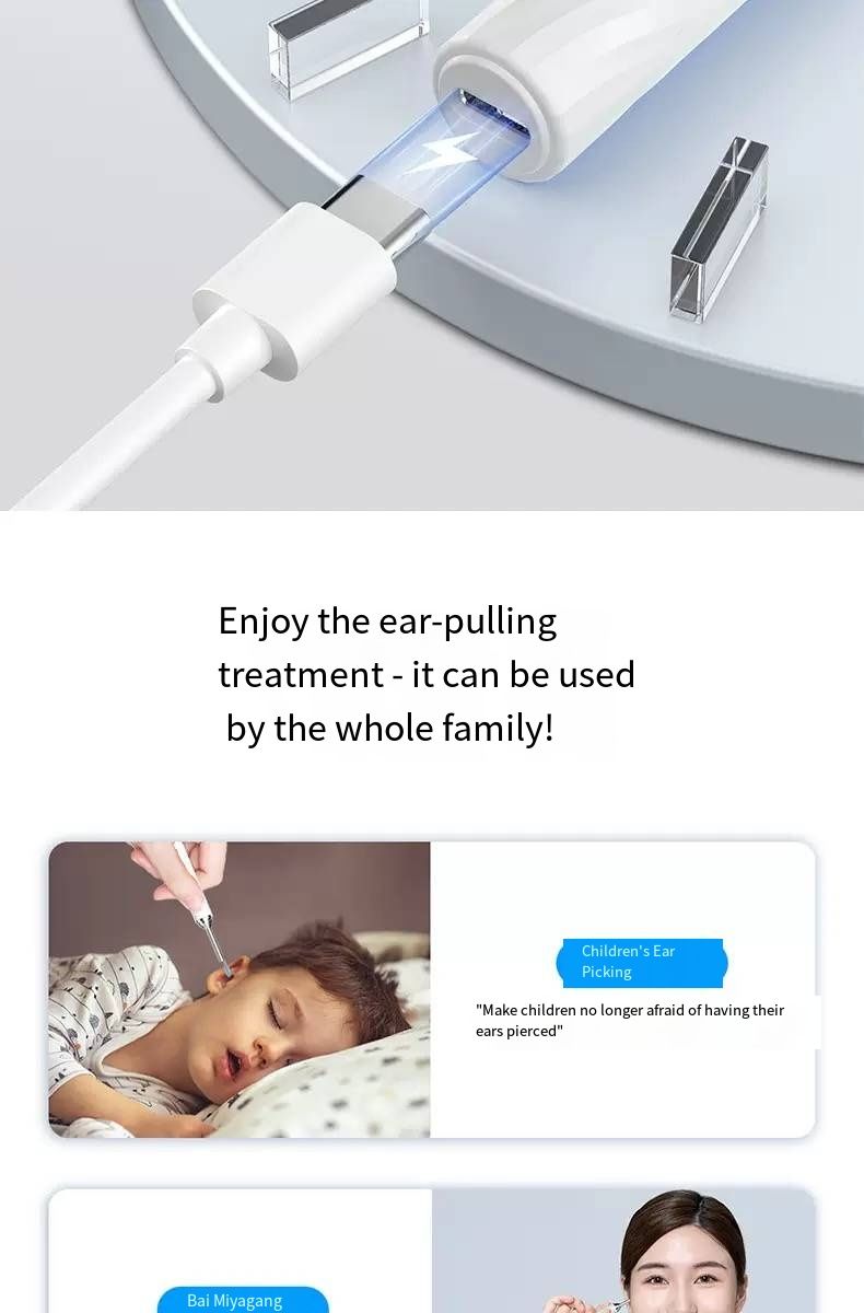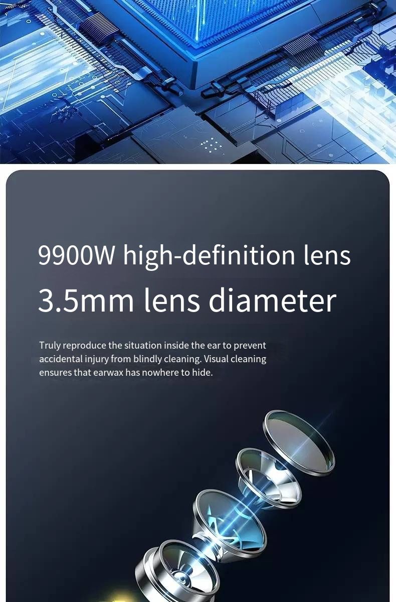 Still picking your ears blindly? This intelligent visual ear pick tool turns your hand into an "ear canal microscope"! With 35 million ultra-high-definition pixels and a 3.5mm ultra-fine lens, you can connect it to your phone to see the ear canal status in real time. IPX4 waterproof and 230mAh long battery life make ear picking like an "ear canal SPA", safe and clean. Say goodbye to ear canal troubles from now on.Afraid of hurting your child’s ears when picking? Can’t get your own ears clean enough? This visual ear pick solves all these problems! The high-definition lens makes earwax in the ear canal "nowhere to hide", and the soft tip design is gentle and non-irritating. Whether it’s for your child’s care or your own cleaning, you can see clearly and pick cleanly, achieving "professional ear picking freedom" at home.