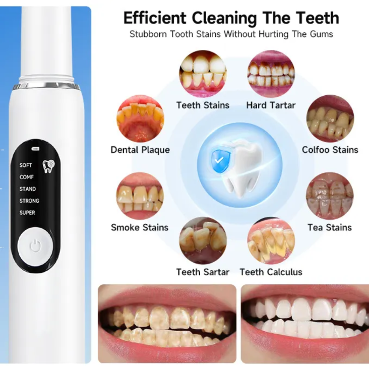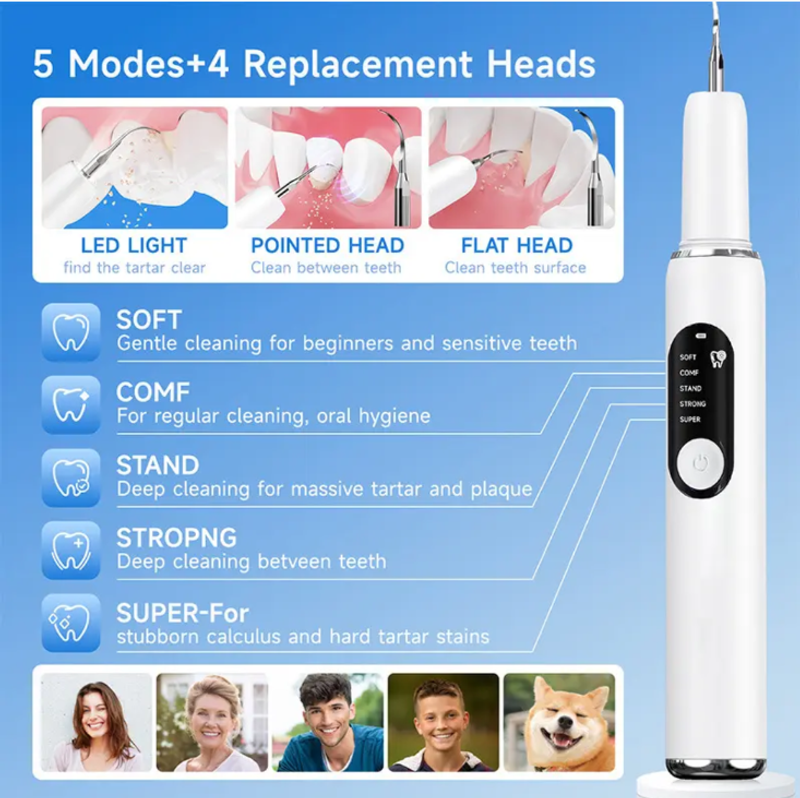 It is equipped with 5 intelligent cleaning modes, ranging from gentle care for sensitive gums to powerful stain removal, meeting the cleaning needs of different oral conditions. There are 4 replacement nozzles, including standard nozzle, orthodontic nozzle, periodontal pocket nozzle, and tongue coating cleaning nozzle. Whether you are an orthodontic patient, someone with periodontal care needs, or just for daily oral maintenance, you can find a dedicated cleaning solution.