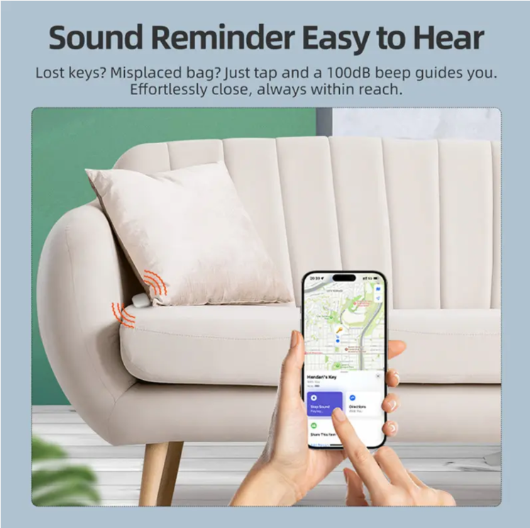 It is equipped with a loud sound device of 80 - 100 decibels. When the item is lost within a close range, a sound reminder is triggered by the mobile phone App, and the loud sound can quickly guide you to find the item. In small-scale scenarios such as homes and offices, it can quickly solve the problem of "the item is right there but cannot be found".